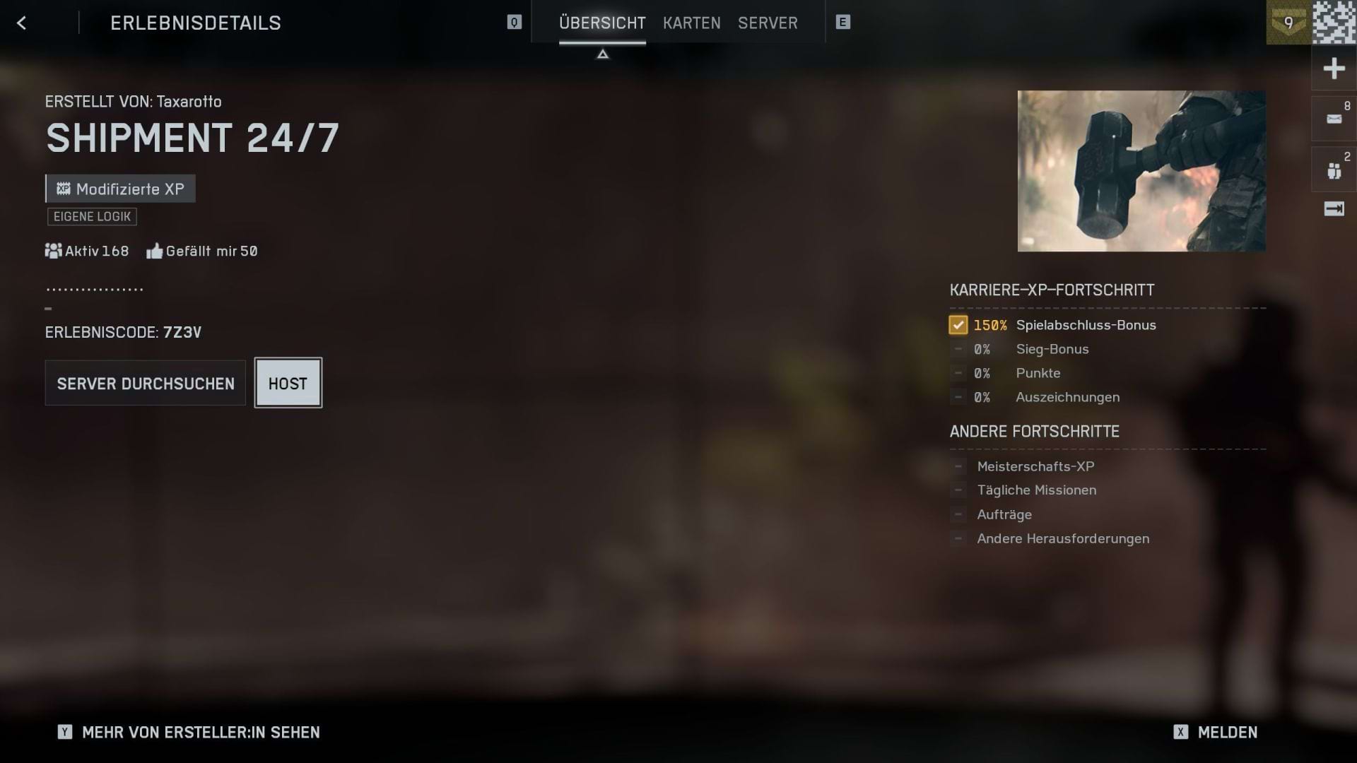 Über das Hauptmenü von Battlefield 6 gelangst du in den Bereich „Community“. Dort kannst du gezielt nach „Shipment“ oder „Shipment 24/7“ suchen. In der Liste erscheinen mehrere Versionen, die sich im Spielmodus und Layout leicht unterscheiden können.