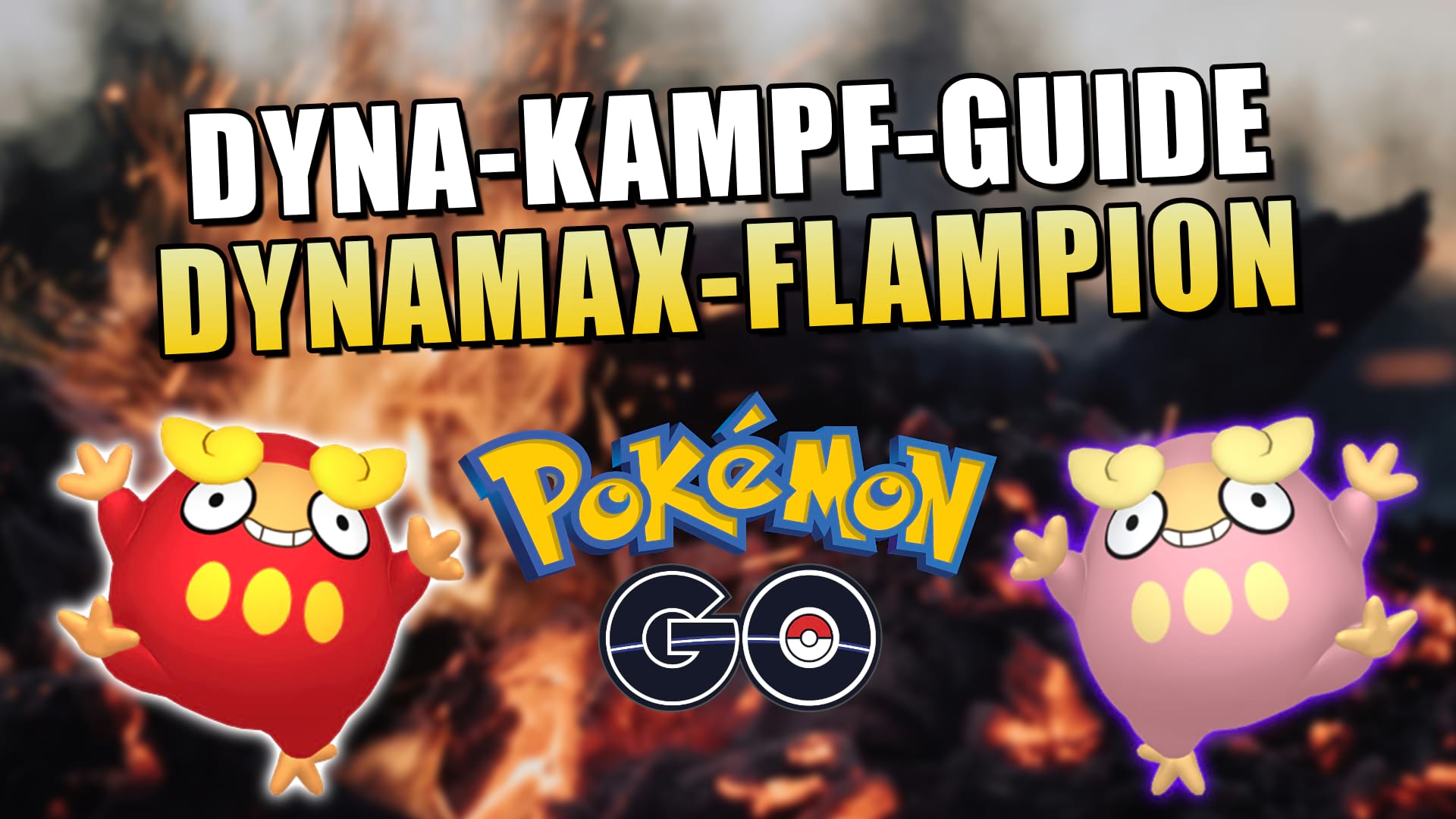 Detaillierter Überblick zu Dynamax-Flampion in Pokémon GO mit Typendiagramm, Moveset, Shiny-Verfügbarkeit, Kontern und Verteidigern für Dyna-Kämpfe.