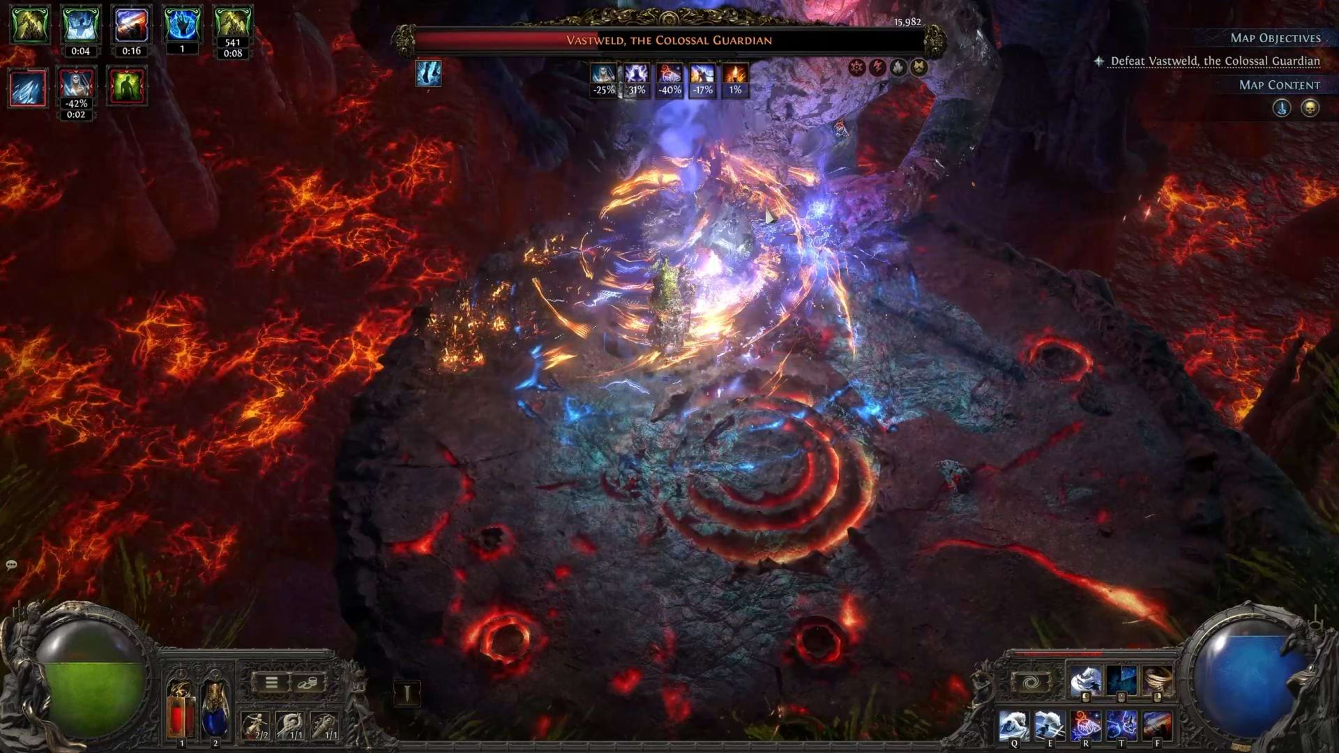 Durch die Automatisierung spielt die reduzierte Dauer keine große Rolle. Pflanzen-Skills wie Entangle bauen selbstständig ein wachsendes Schlachtfeld auf, das durch Sturmzauber weiter verstärkt wird.