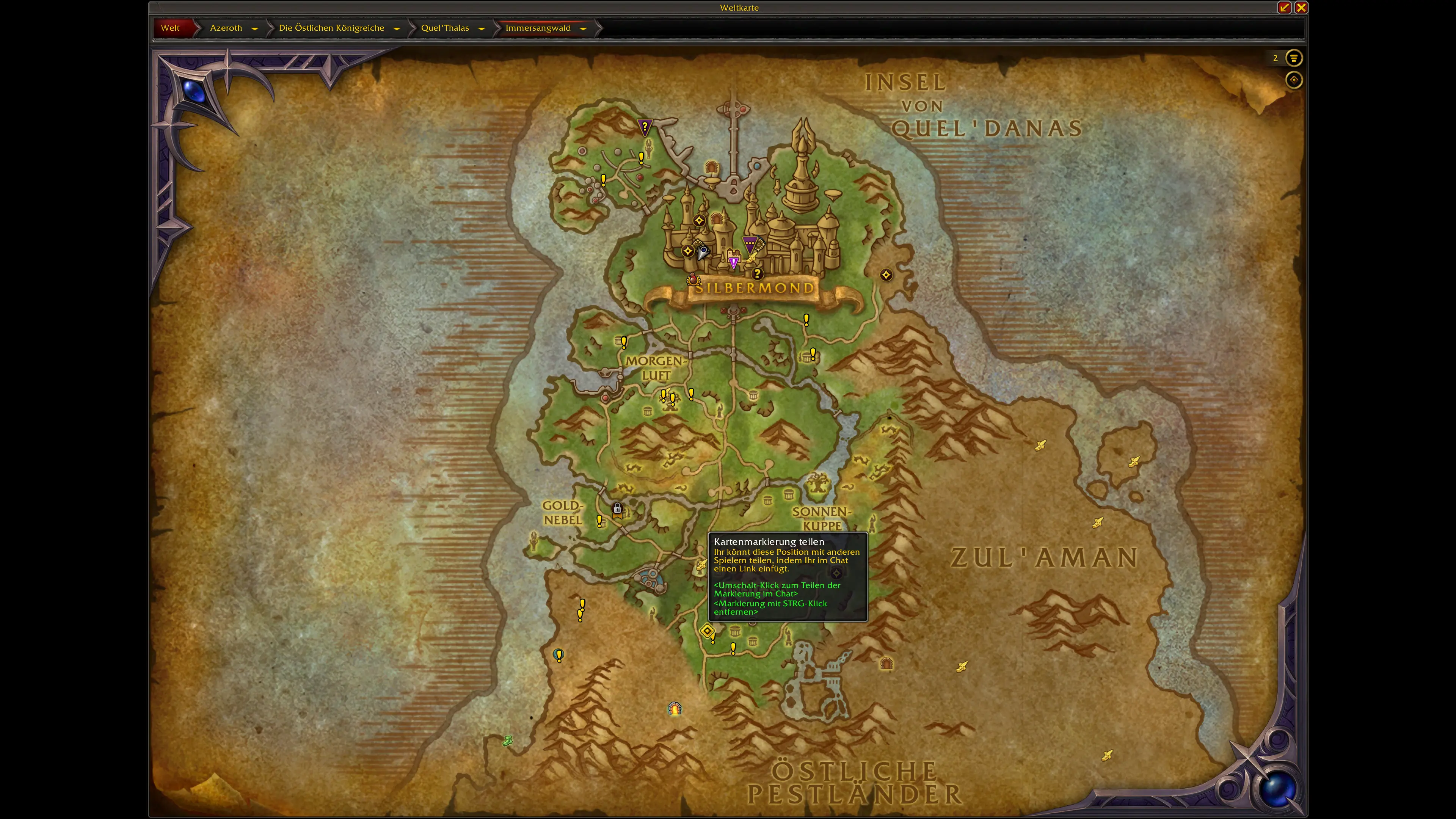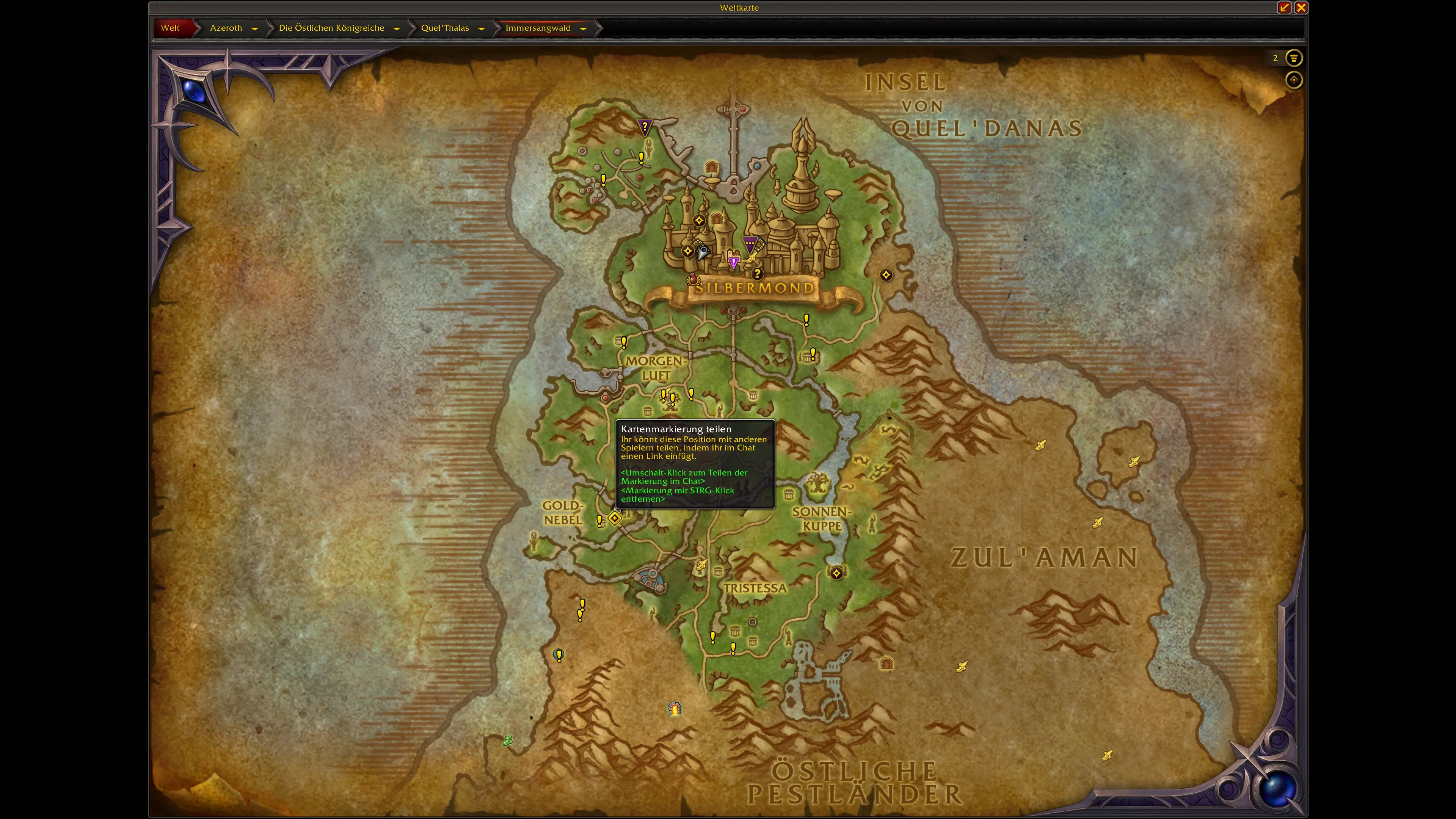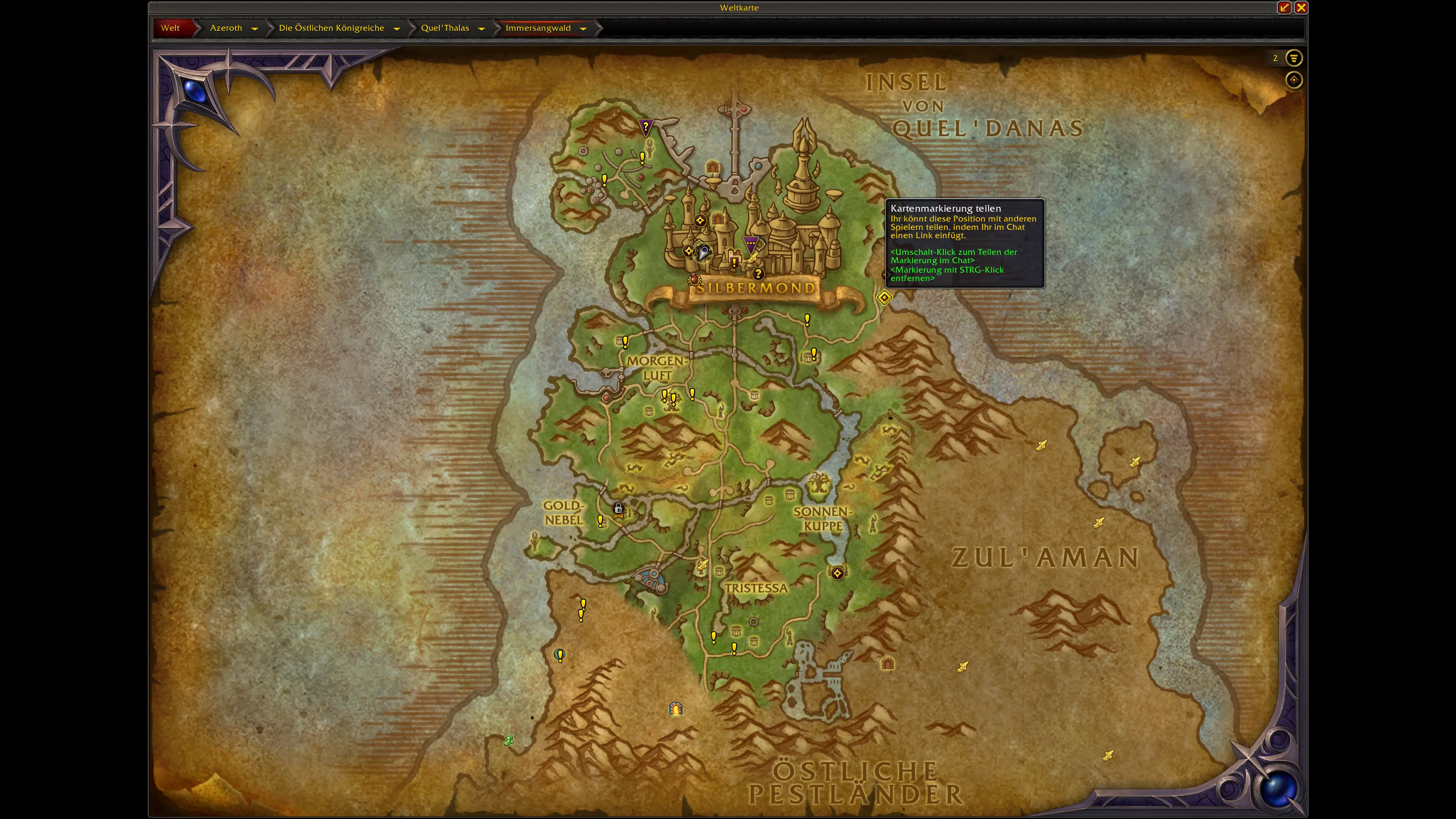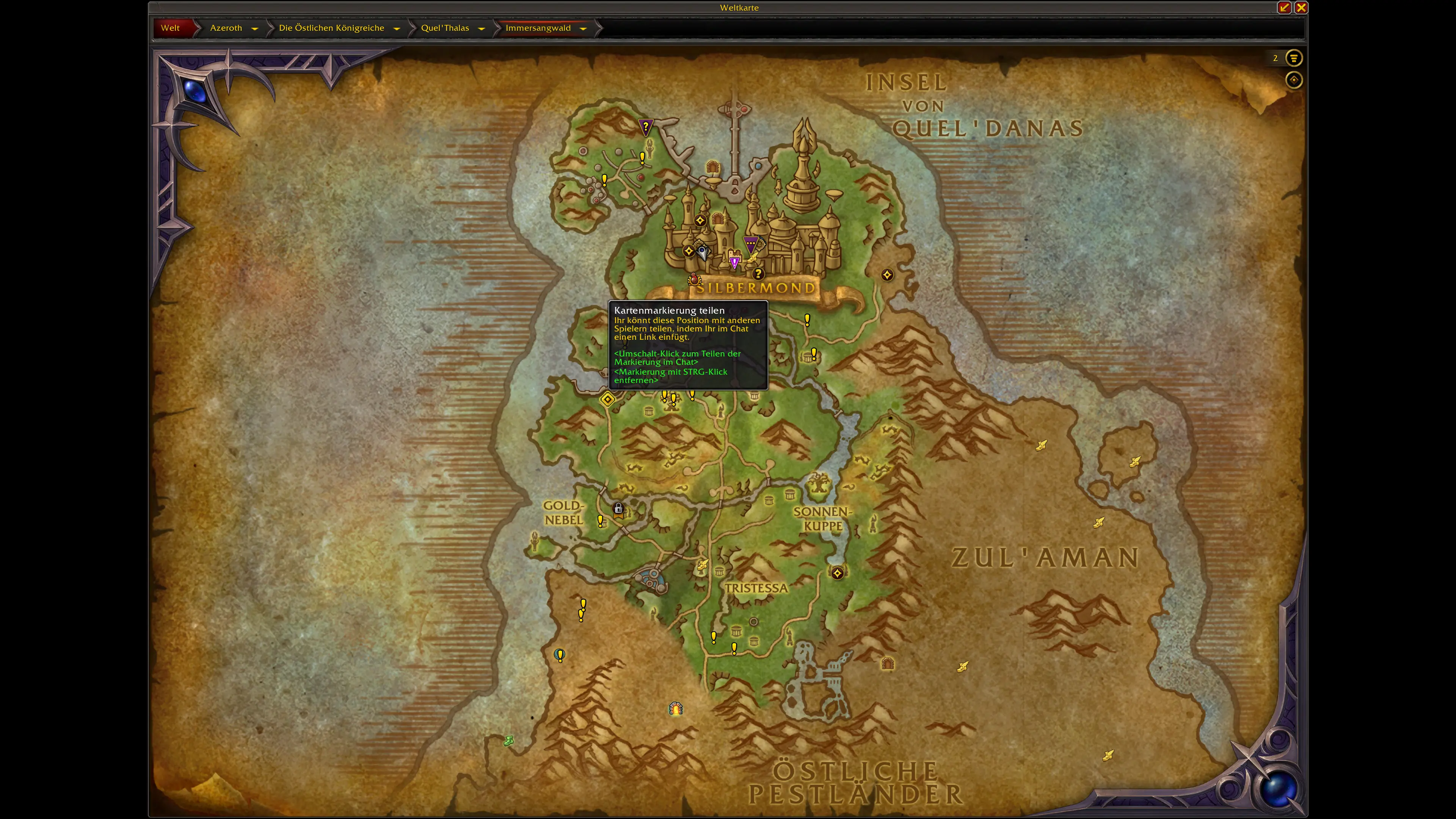 Die Schätze sind über die neuen und überarbeiteten Gebiete von Quel'Thalas verteilt. Die meisten Fundorte konzentrieren sich auf: