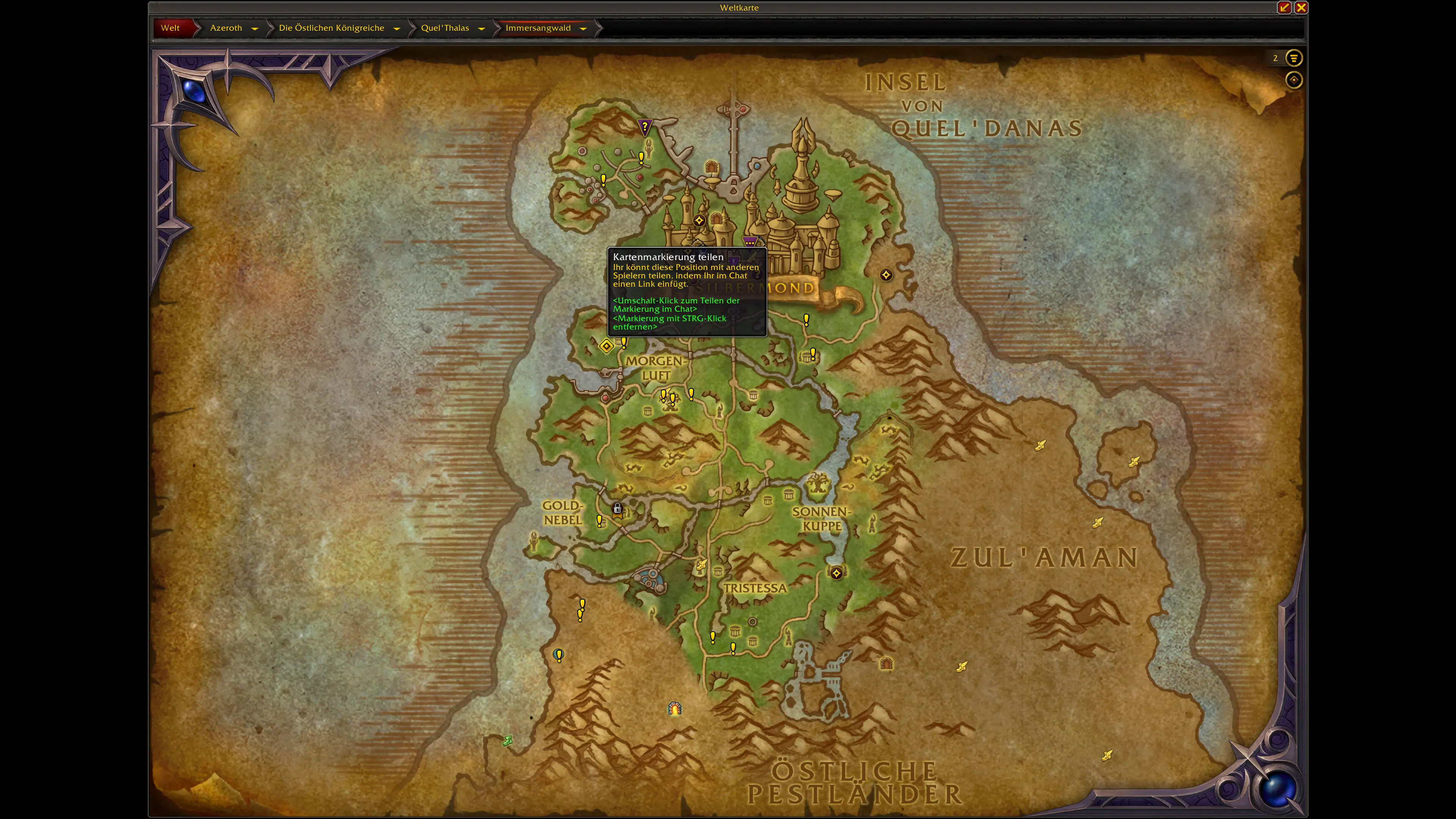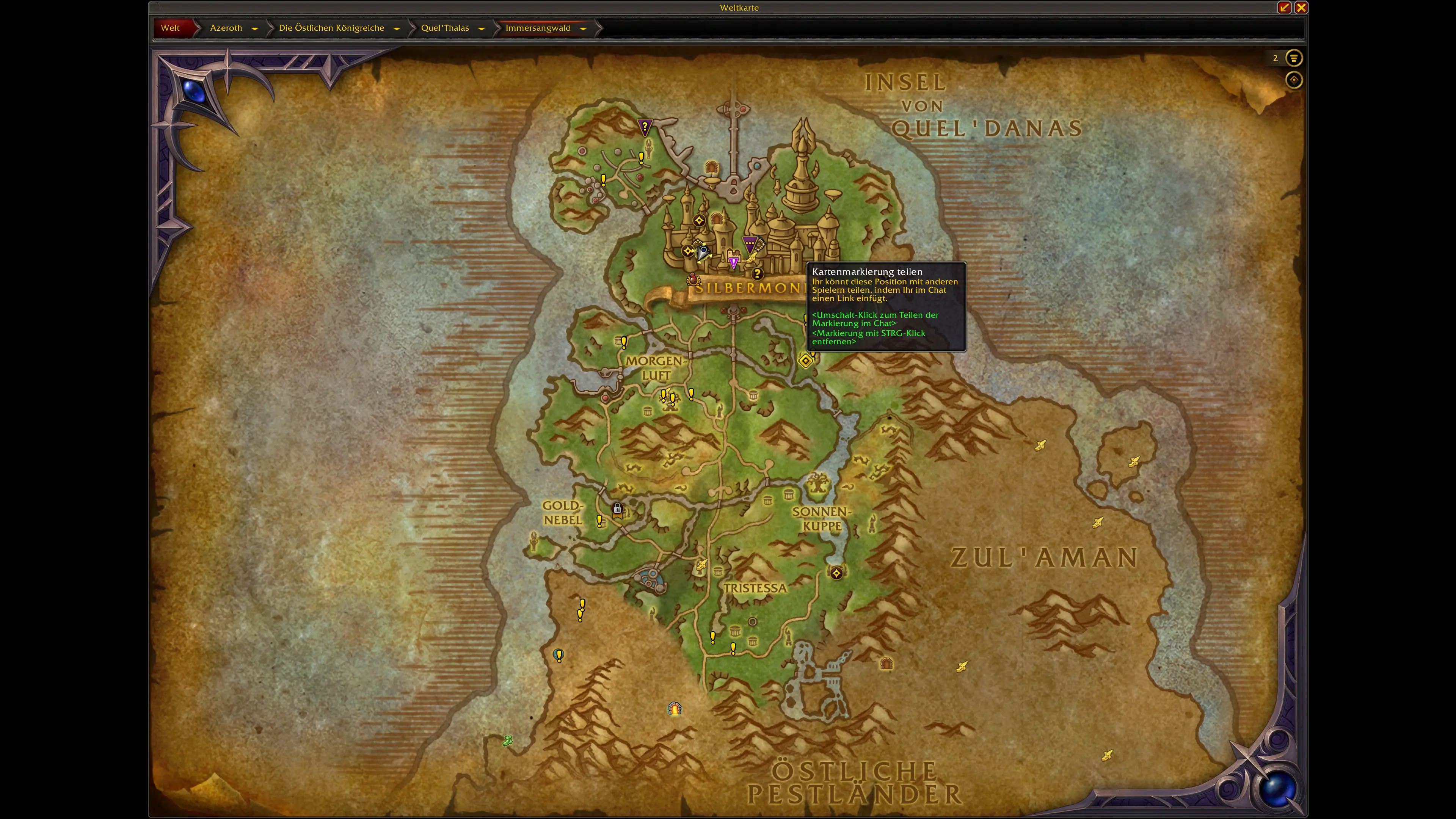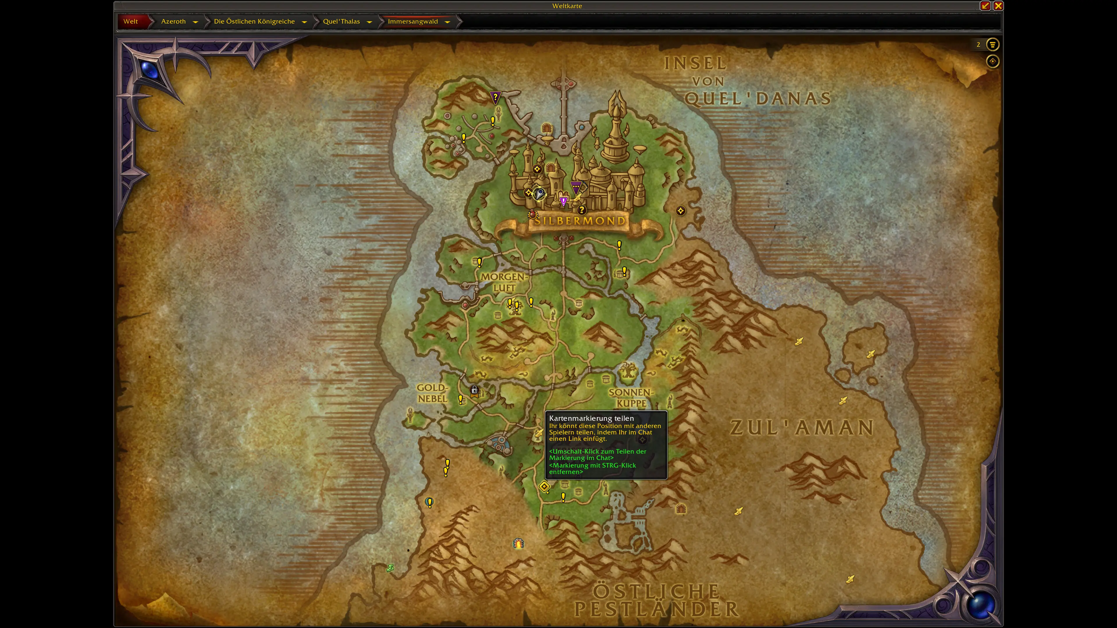 Die Schätze sind über die neuen und überarbeiteten Gebiete von Quel'Thalas verteilt. Die meisten Fundorte konzentrieren sich auf: