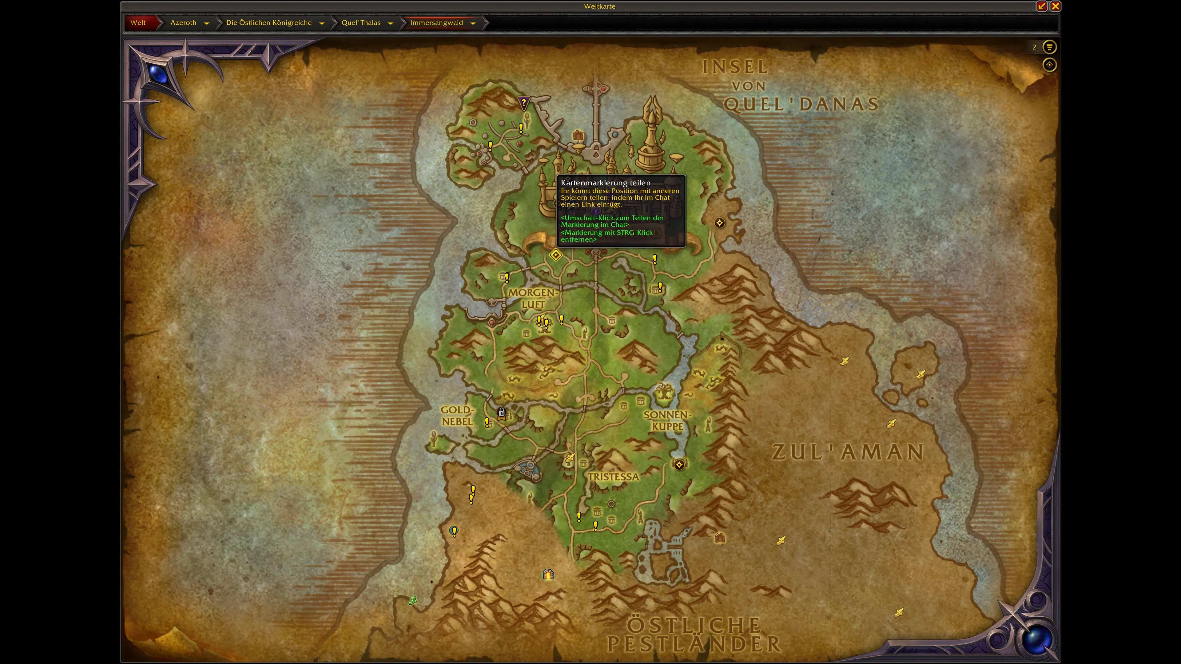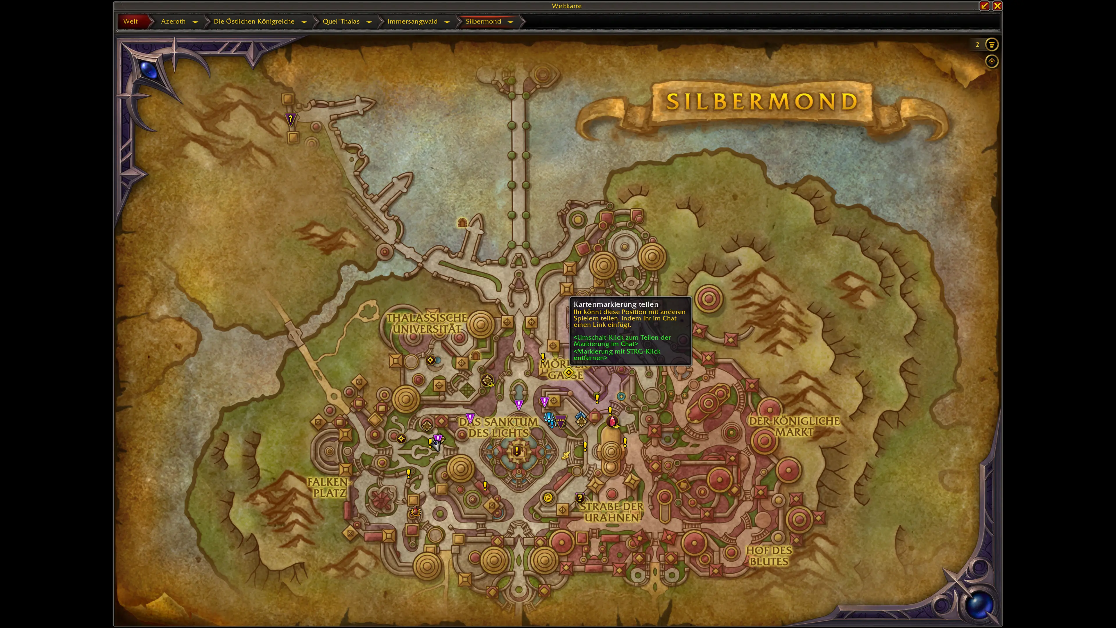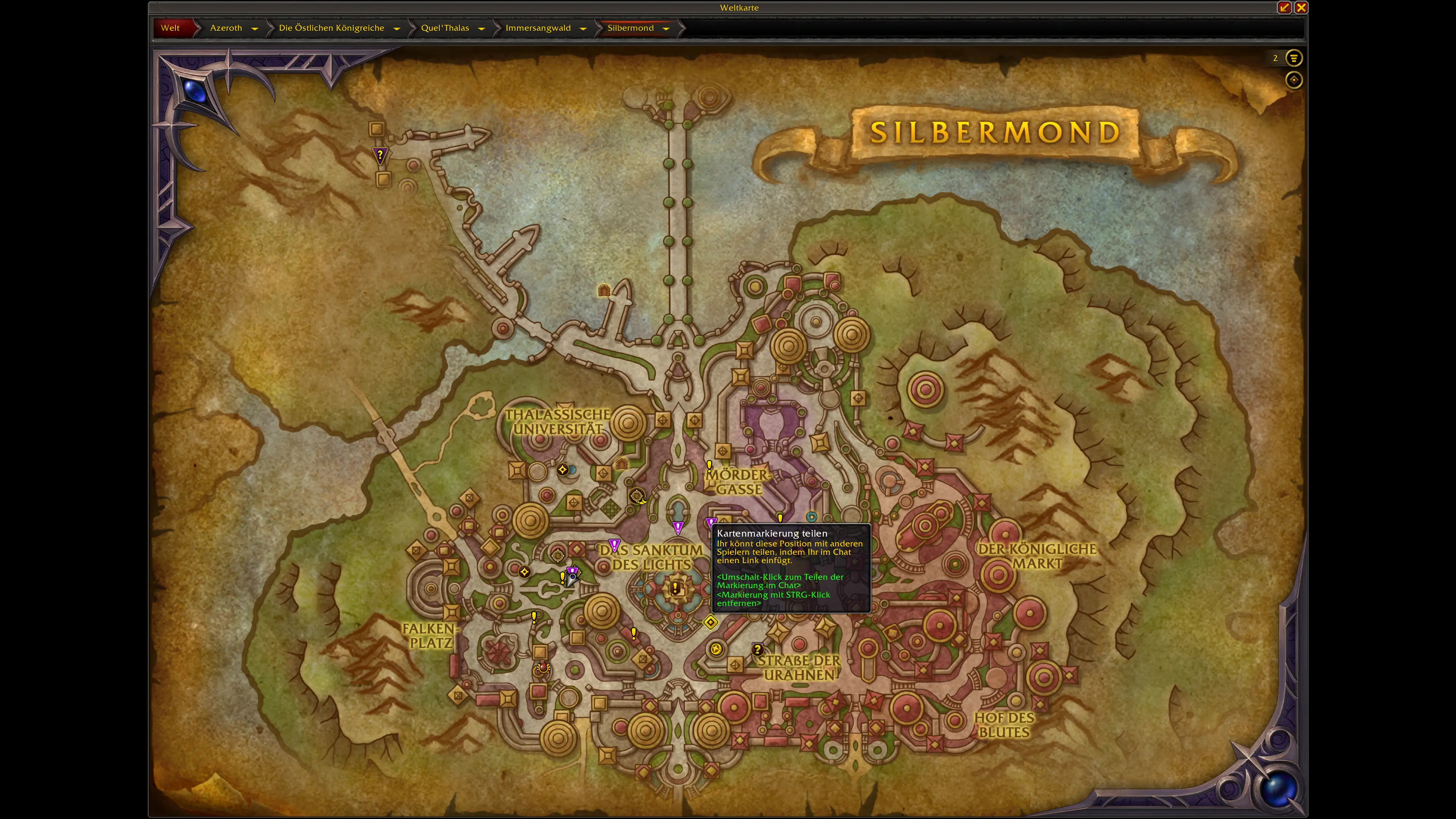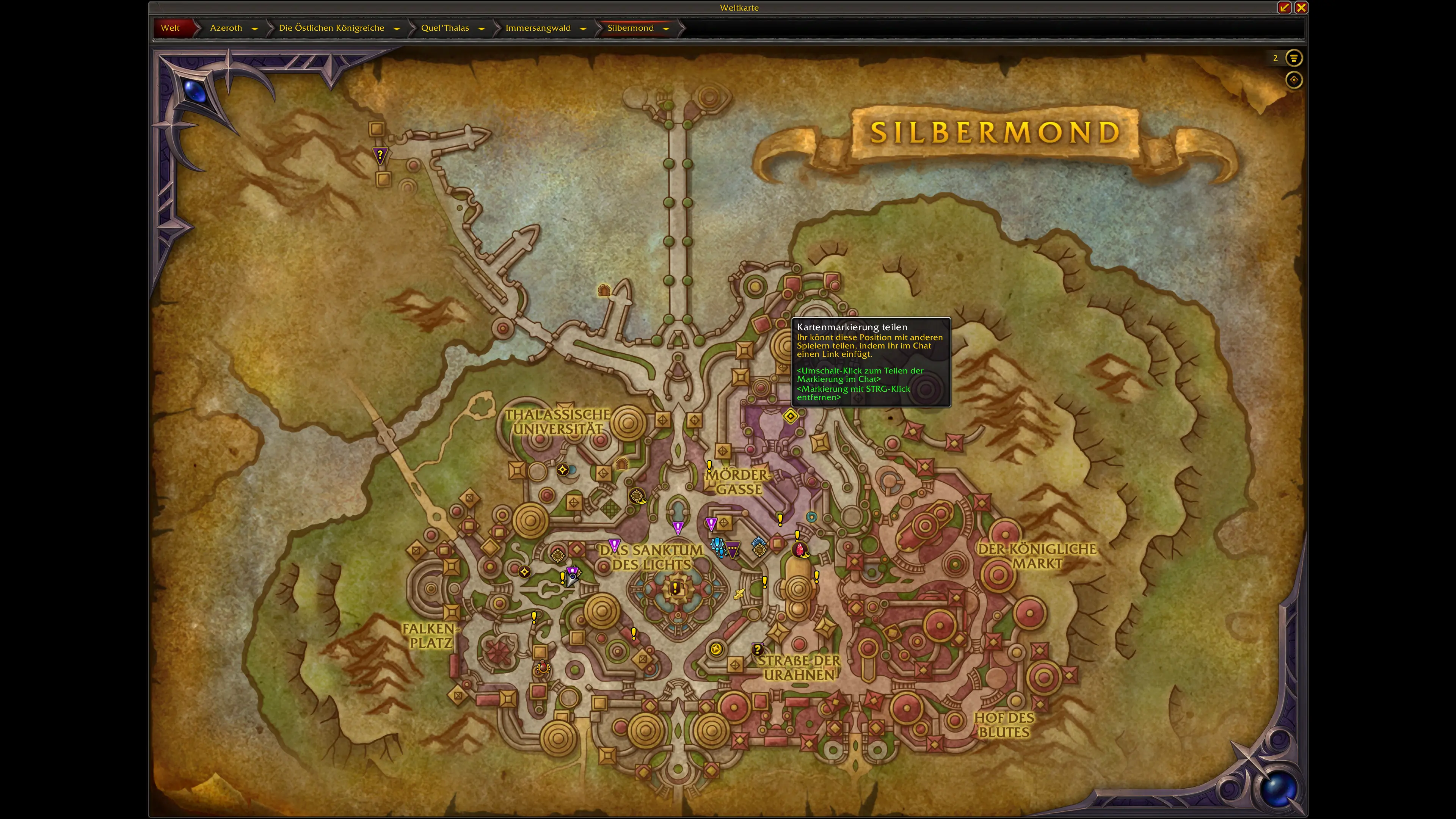 Die Schätze sind über die neuen und überarbeiteten Gebiete von Quel'Thalas verteilt. Die meisten Fundorte konzentrieren sich auf: