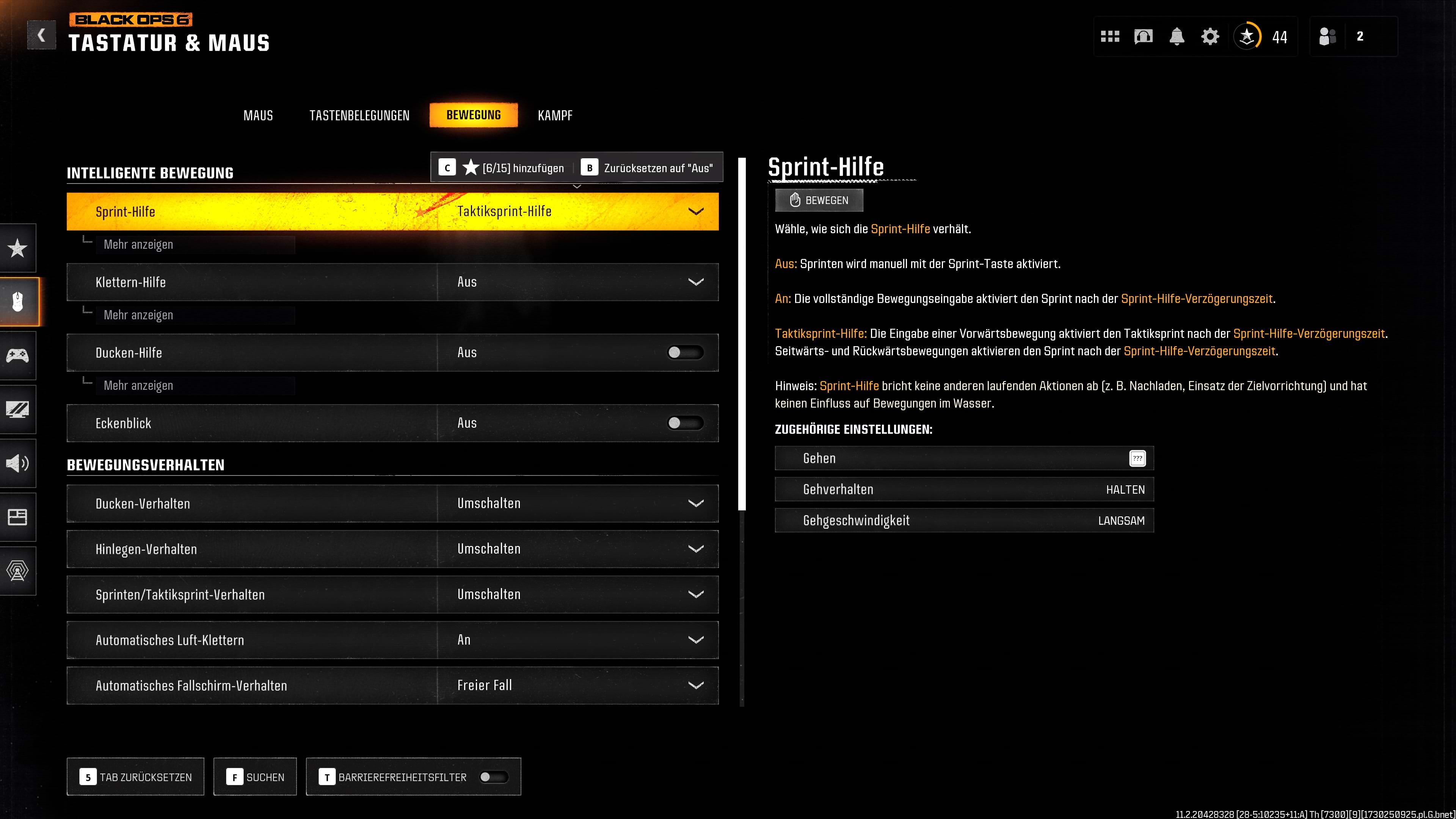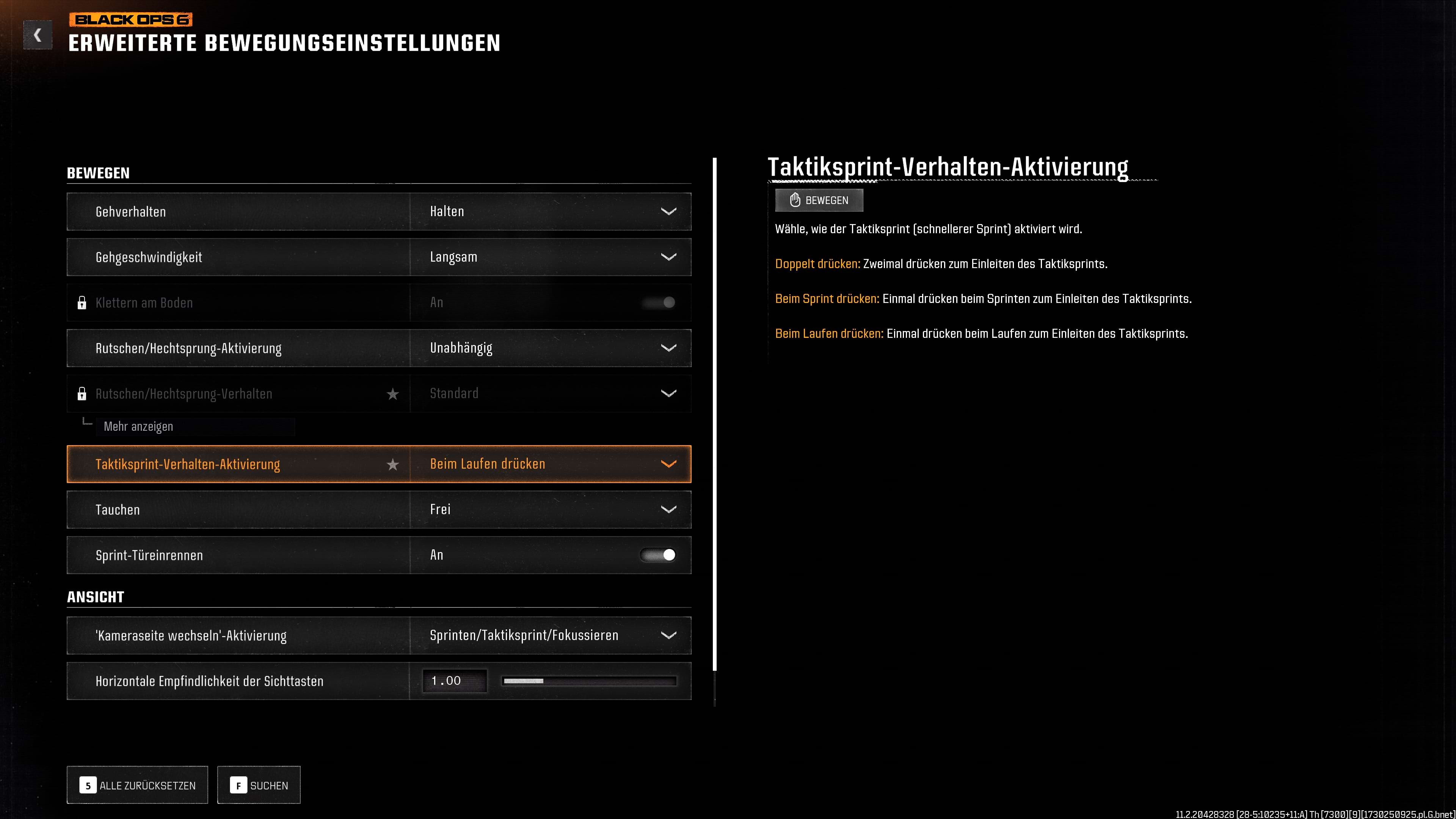 - Taktiksprint-Verhalten-Aktivierung: Beim Laufen drücken